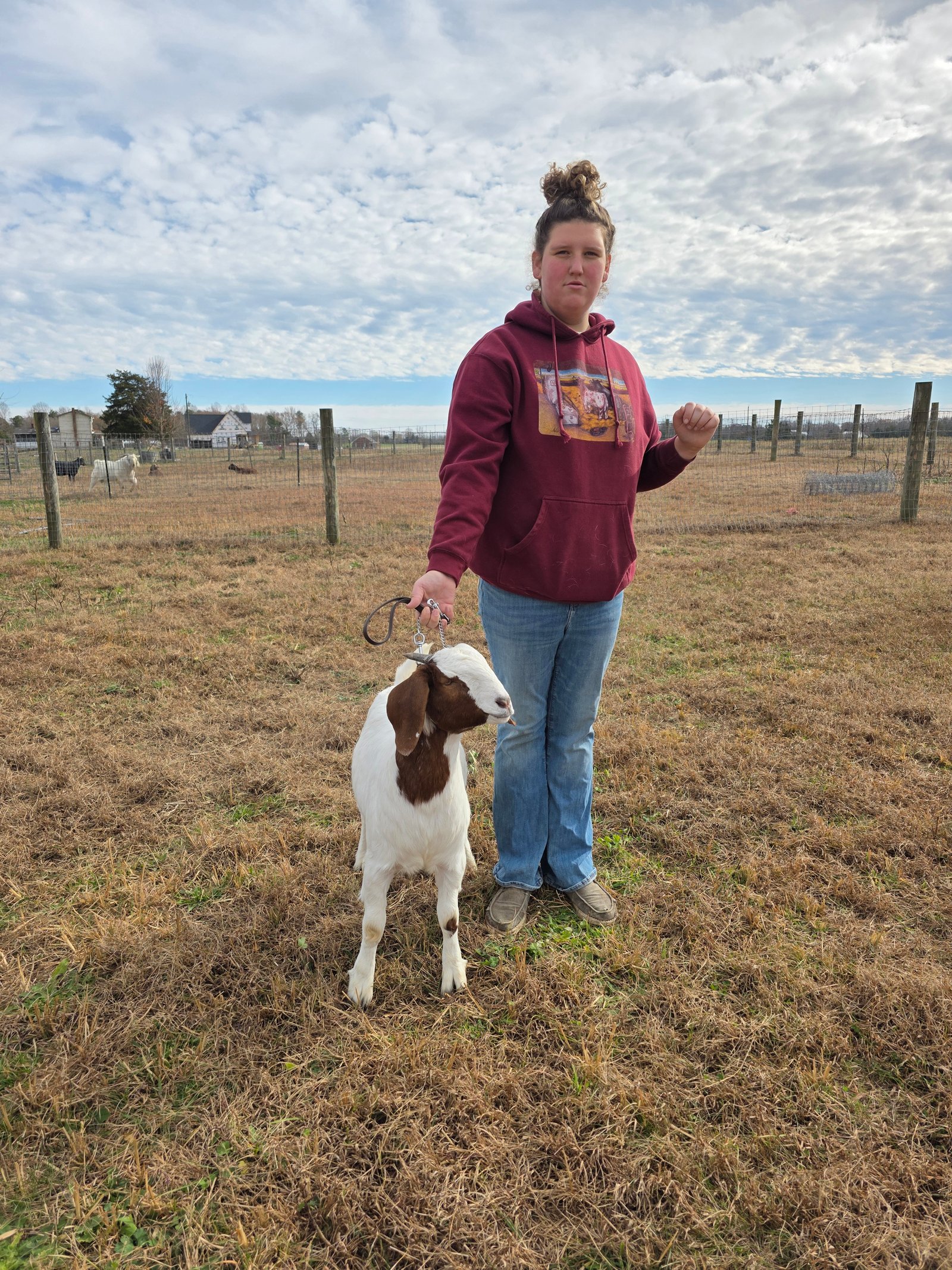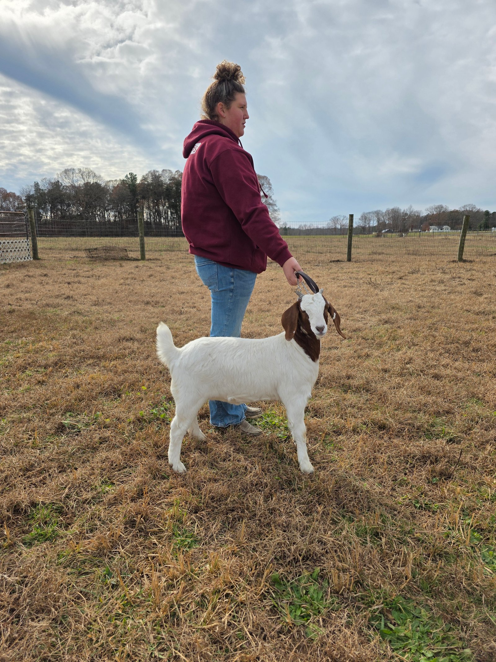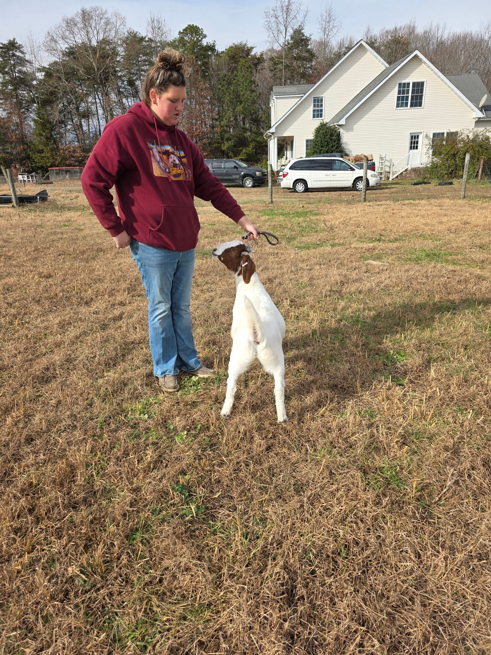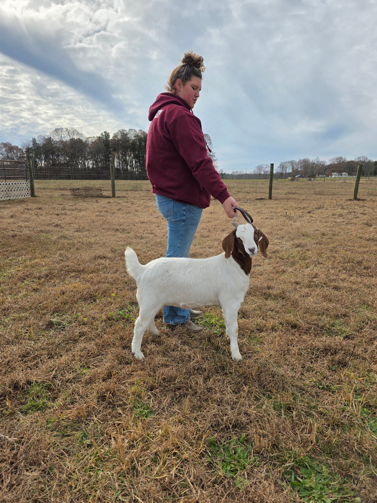 9 month old commercial doeling. Sire is 100% ABGA Registered. Placed top 5 in every show last spring and summer. Has dapple genetics.