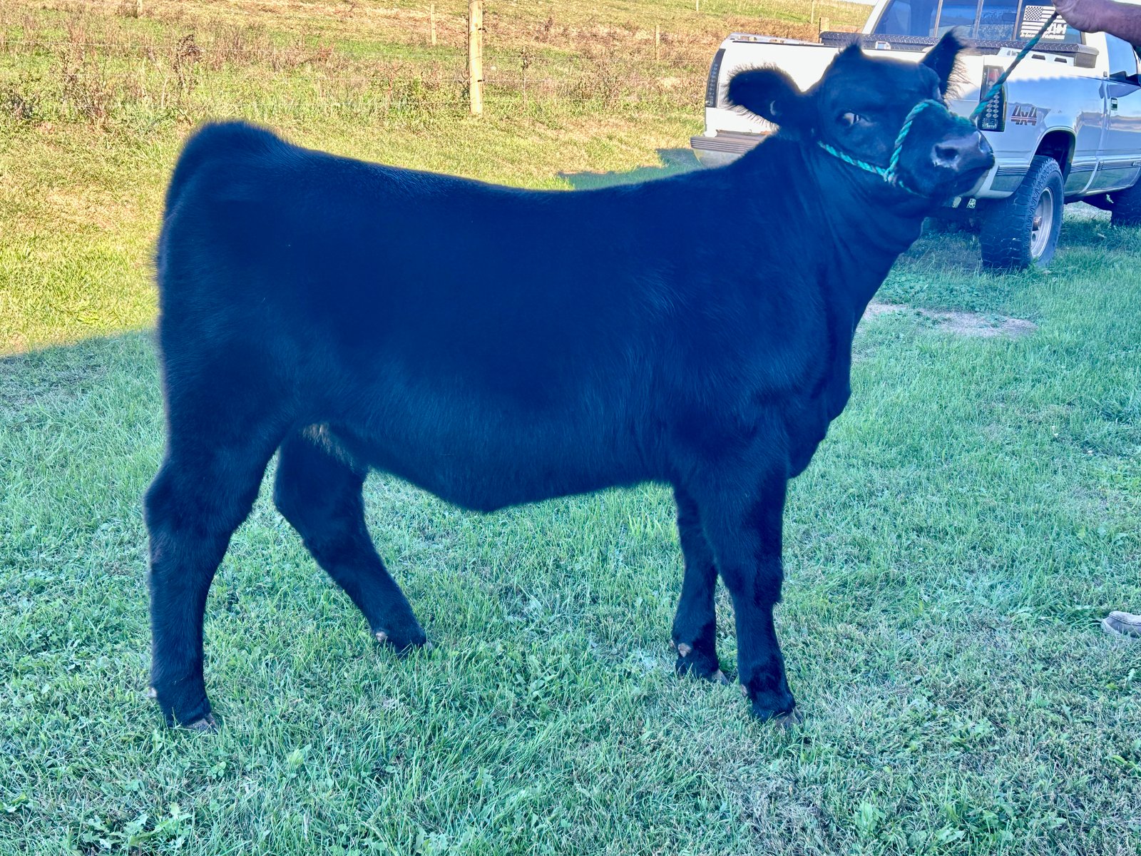 Hocus Pocus daughter out of a No Guts No Glory cow. Commercial Market Heifer. Calm disposition calf, was shown once in the prospect calf class at our county fair. DOB: 1-21-2025 Located near New Castle, PA Text/call 724-371-7824 (Dylan) with any questions Follow us on Facebook “Old English Acres” specializing in Registered Limousin and Club Calves