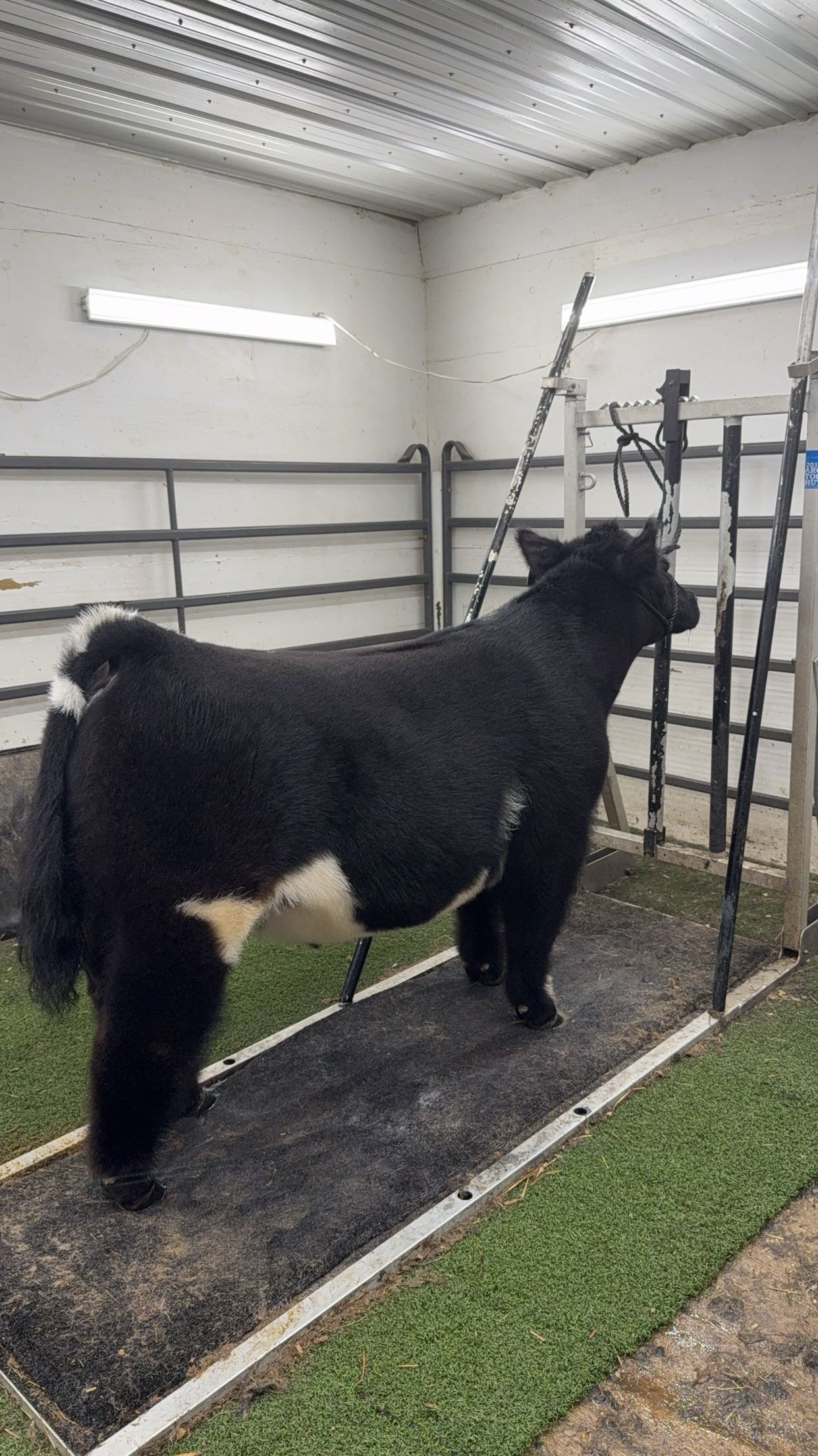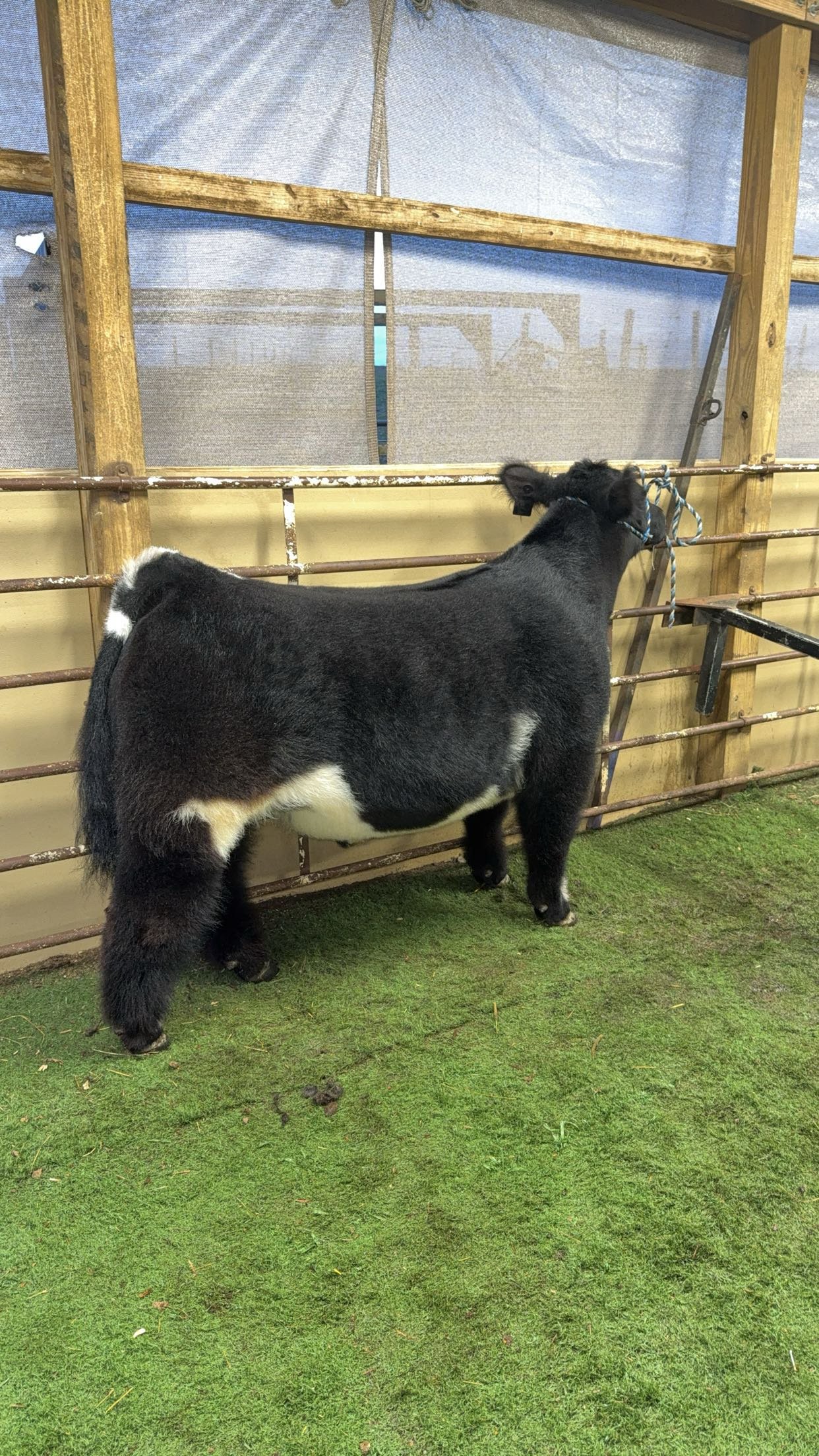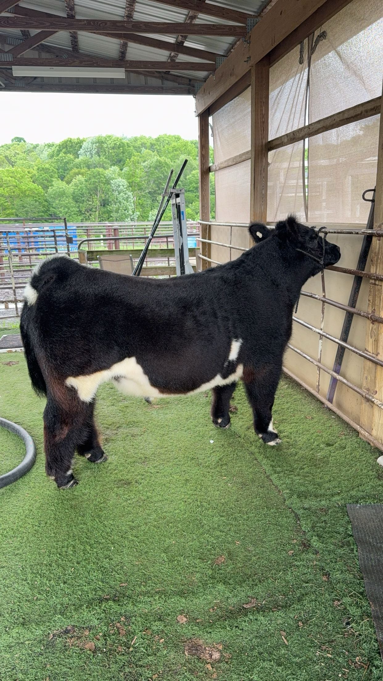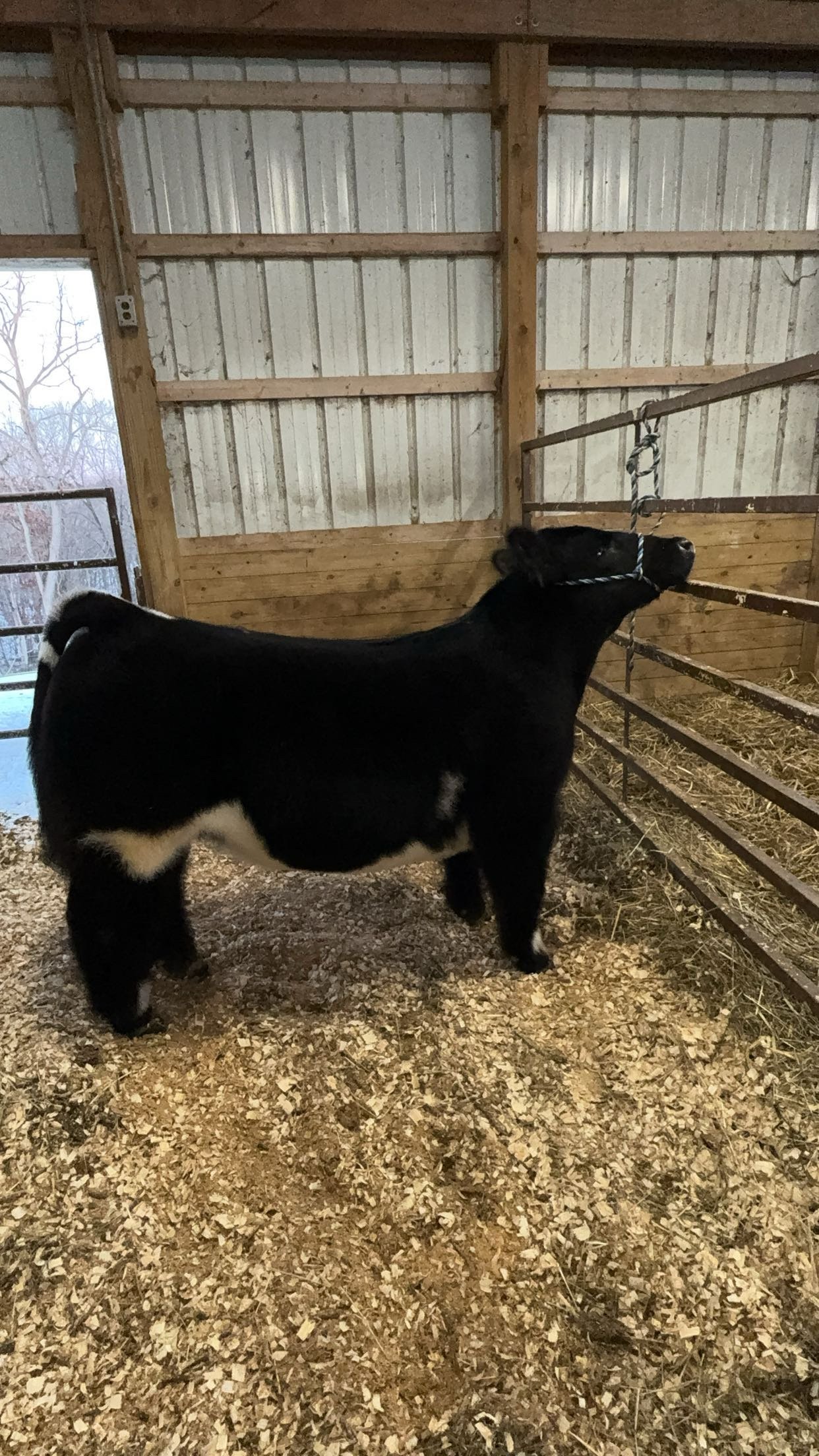 Huff N Puff x Fu Man Chu steer. Born spring of 2024. All done showing, very successful show career, has been in the top five. Recently slicked off three weeks ago, ready for fall hair growth. Plenty of gas in the tank. 304-771-8733 message for video