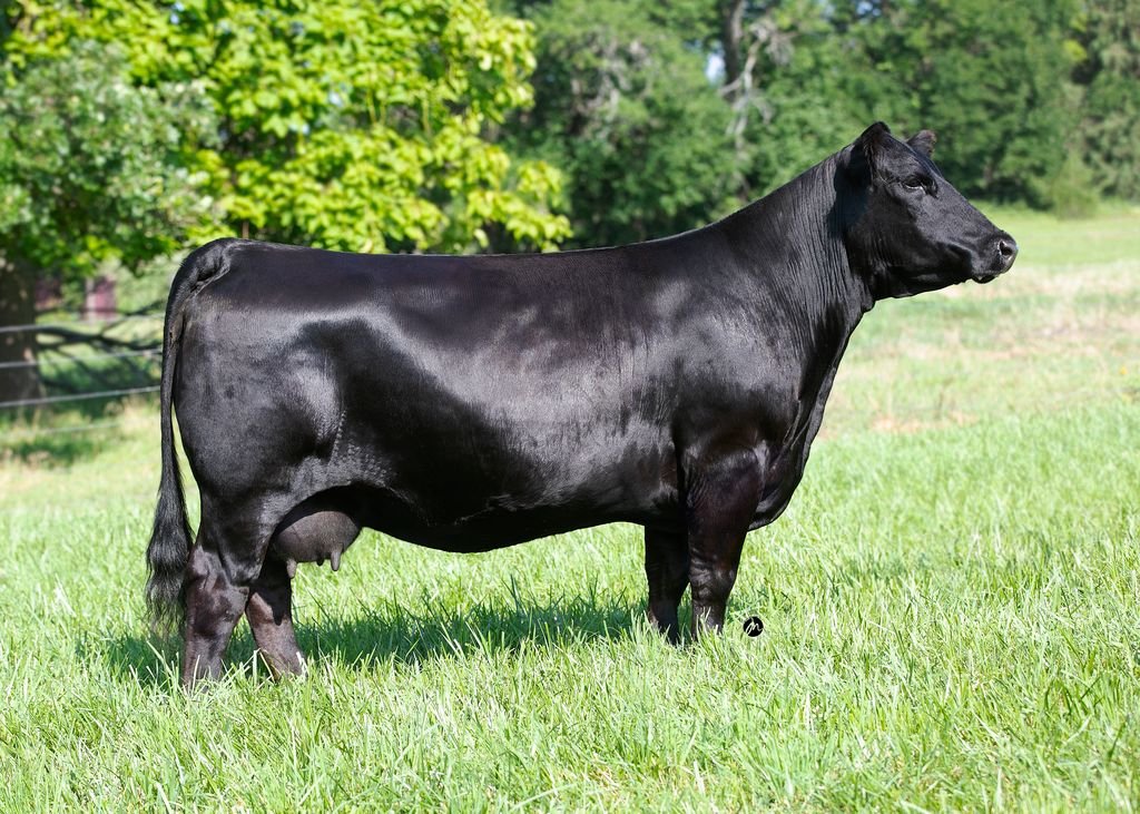 G-S GLAMOUR RUSH N34 // Sire: Seldom Rest Sandman 6075 • Dam: TL Miss Glamour 19E (Pictured) • DOB: 3/21/2025 • Sex: Open Heifer • Breed: 1/2 Simmental • PICTURED SEPTEMBER 28TH • 19E is phenotypically one of the most impressive females we’ve ever been around. She serves as our lead donor in the Simmental division at GS, and only gets better with age with her power, mass, and picture-perfect udder that all High Calibre females possess. Shane has always been a big fan of the Sandman daughters, and this mating with our 19E donor really clicked. Tag N34 brings her dam’s extra substance with the refined look of her sire. She’s just starting to hair up and has been doing all the right things these past two weeks. No fluff and puff - we really dig this one.